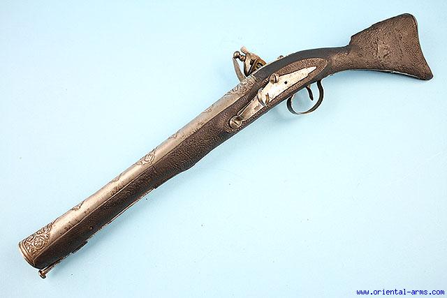 Fine Ottoman/ Persian Blunderbuss Pistol with Damascus Barrel -