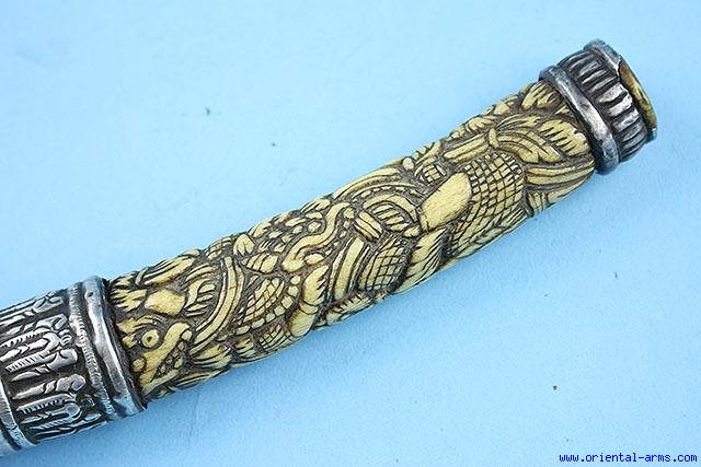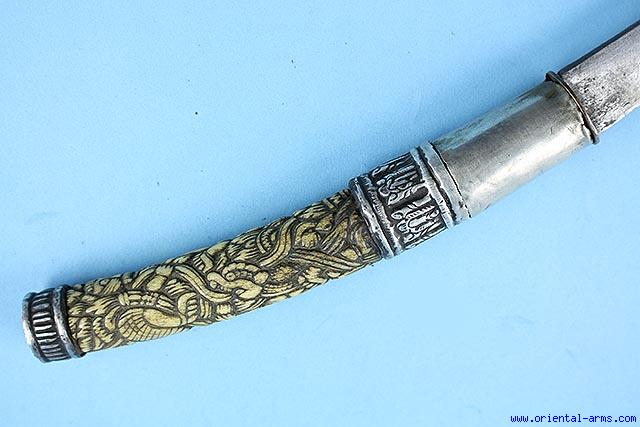 Very Good Long Dah Knife with Carved Bone Handle -
