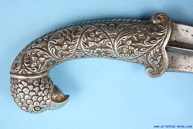 Indian Khanjar Dagger with Bird Head Silver Handle -