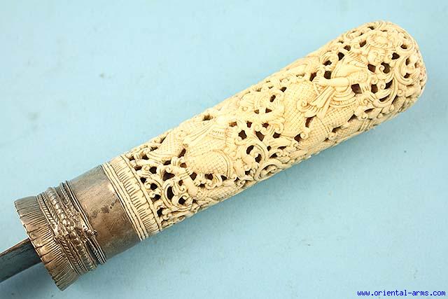 Very Fine Massive Dha Knife with Carved Ivory Grip -