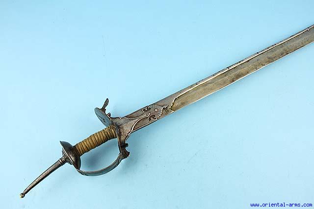 Fine 18 C. Khanda Sword with Damascus Blade, India -