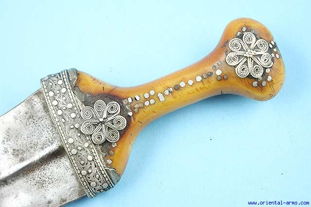 Yemenite Thouma Jambiya Dagger with Amber Like Handle -