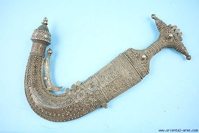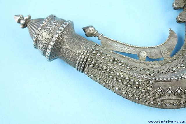 Fine Yemenite Whole Silver Assib Jambiya Dagger -