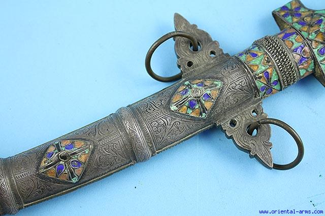 Fine Early Enameled Moroccan Koumaya / Jambiya Dagger -