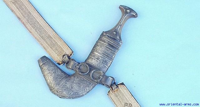 Fine Silver Mounted Jambiya Dagger Oman with Belt -